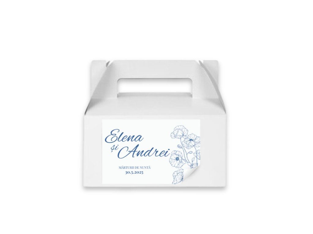 Autocolantul pentru mărturii aduce o bucată din cea mai frumoasă zi a D-voastră direct în mâinile invitaților. Autocolantul este decorat cu un design delicat și elegant, care adaugă o notă de frumusețe și armonie cutiei de prăjituri. Acest autocolant este o notă specială care va aduce eleganță și romantism oricărei cutii cu cele mai bune bunătăți.