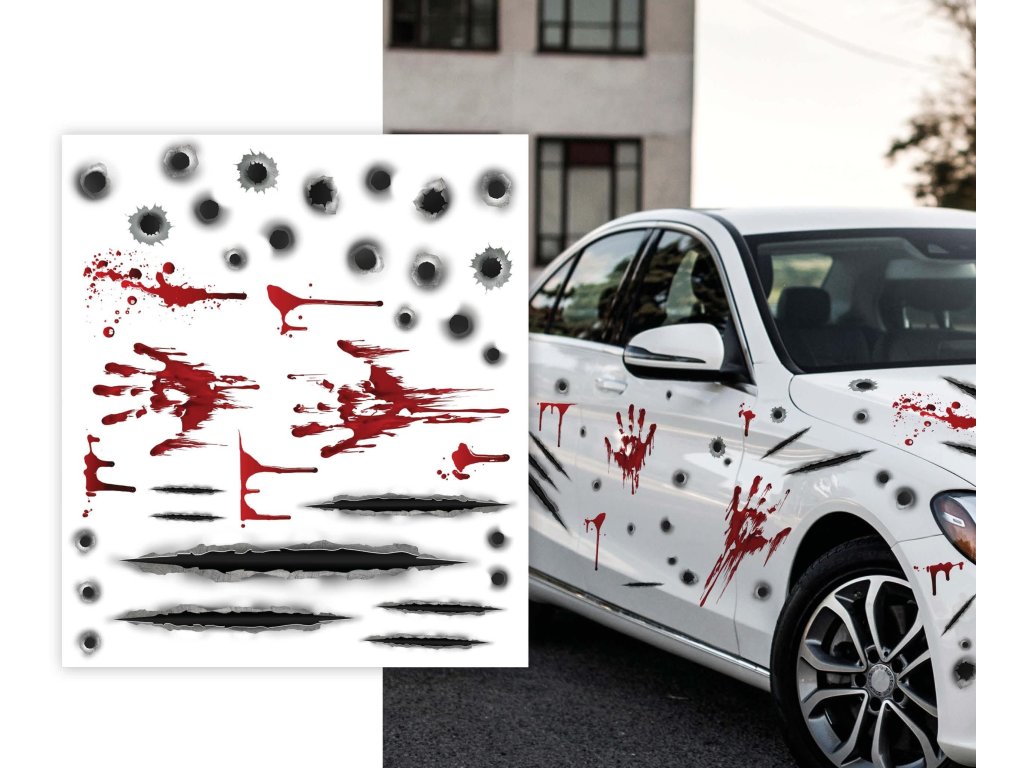 Autocolantele pentru mașină sunt modalitatea perfectă de a adăuga o notă înfricoșătoare în perioada Halloweenului! Cu motive de Halloween, veți transforma cu ușurință mașina într-un accesoriu original și terifiant pentru sezon.