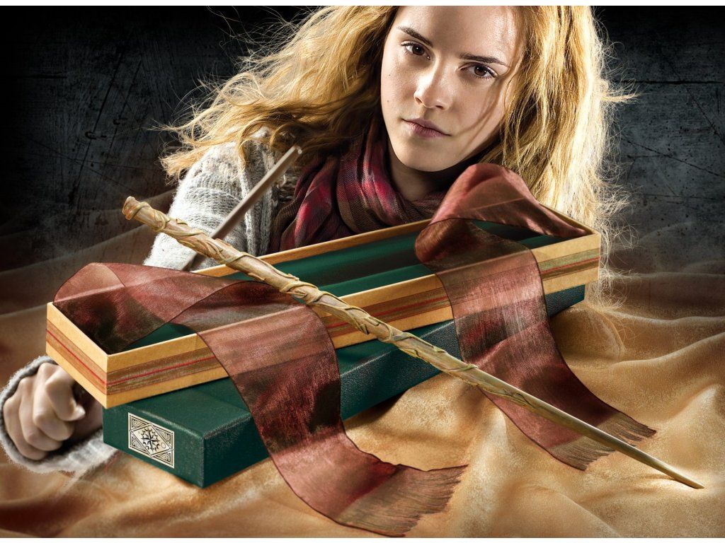 Încântați-vă pe dvs. sau pe cei dragi cu această baghetă magică a lui Hermione Granger, care vine cu o cutie căptușită cu material de catifea și care conține, de asemenea, o panglică decorativă.