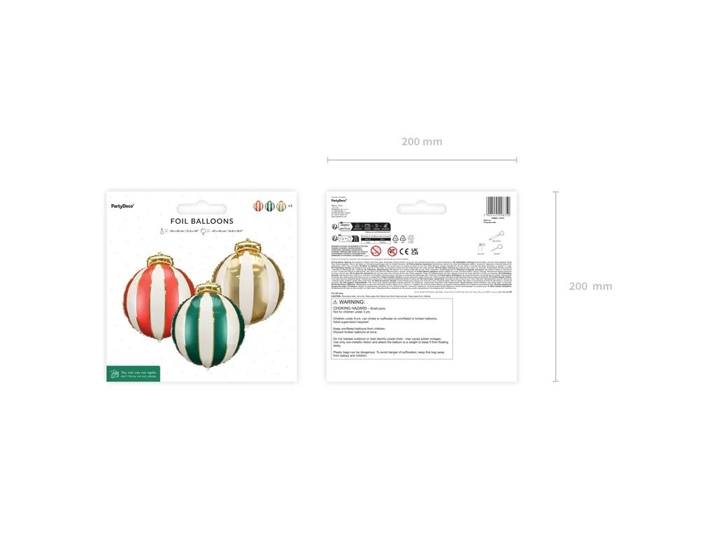 Luminați-vă Crăciunul cu baloanele noastre din folie în formă de globuri de Crăciun! Pachetul conține 3 bucăți, fiecare cu dimensiunea de 42 x 46 cm – ideale pentru decorarea bradului, mesei sau pentru o petrecere de Crăciun cu adevărat reușită.