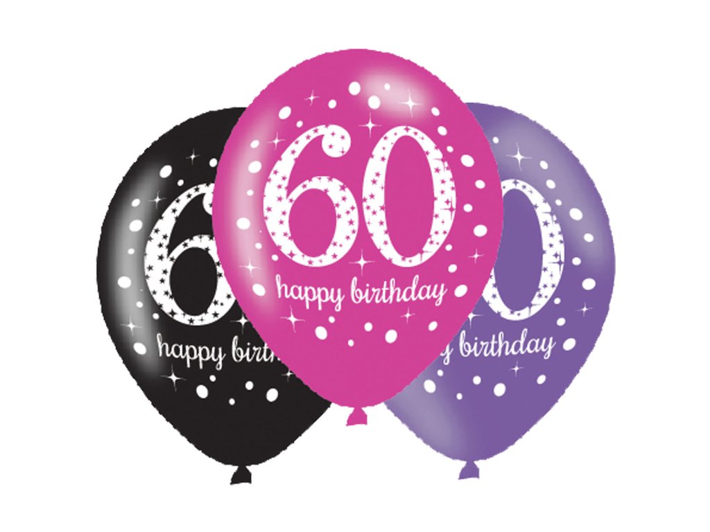 Baloane din latex cu cifră de aniversare 60 - petrecere roz 6 buc
