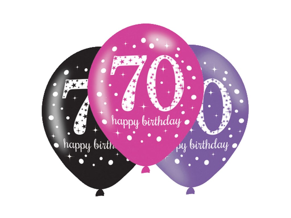 Baloane din latex cu cifră de aniversare 70 - petrecere roz 6 buc