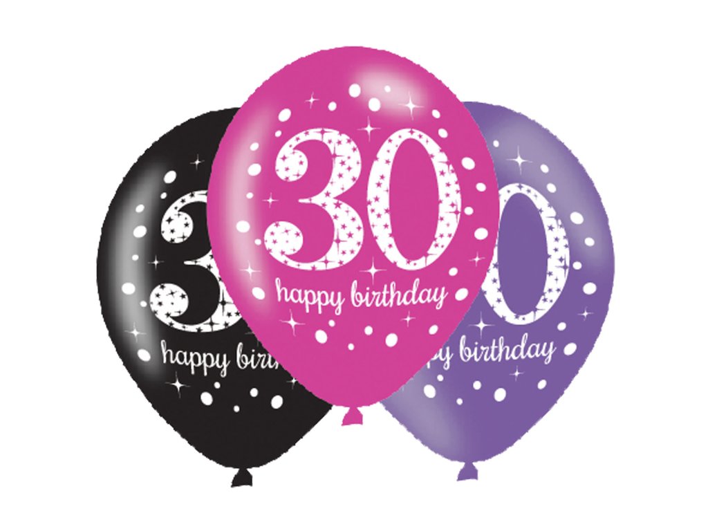 Baloane din latex cu cifră de aniversare 30 - petrecere roz 6 buc