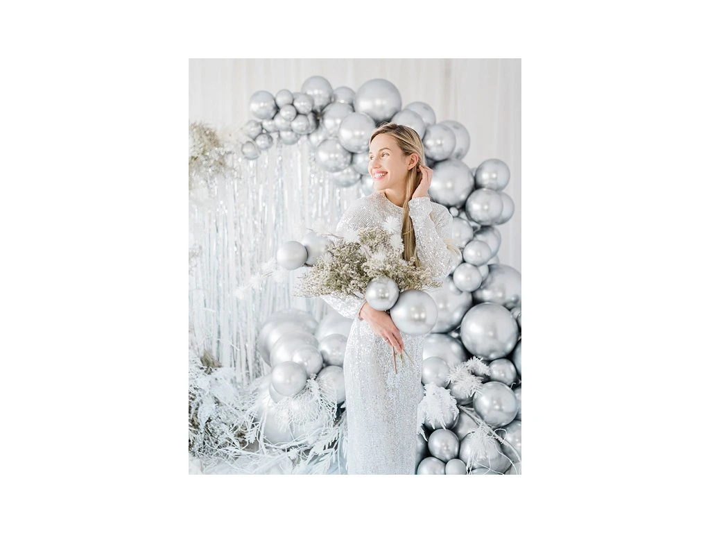 Baloanele cromate au o strălucire frumoasă și arată elegant. Datorită acestor nuanțe cromate, decorațiunile pentru zi de naștere sau de nuntă vor da o impresie de lux și stil. Umflarea este posibilă cu heliu sau aer.