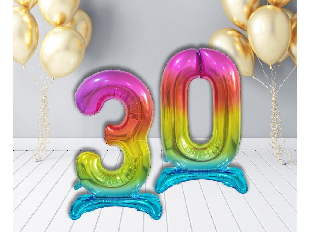 Înfrumusețați-vă decorațiunea de aniversare cu baloane din folie cu suport în formă de cifră. Deși sunt mai scumpe decât baloanele clasice din latex, avantajul lor este calitatea și impermeabilitatea. Balonul din folie cu suport are avantajul că va sta acolo unde îl așezați. Baloanele din folie umflate cu aer vor rezista câteva luni fără modificări semnificative.