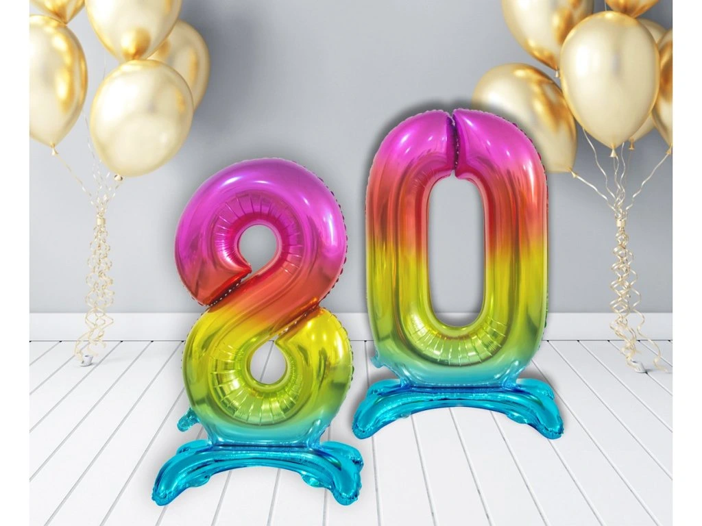 Înfrumusețați-vă decorațiunea de aniversare cu baloane din folie cu suport în formă de cifră. Deși sunt mai scumpe decât baloanele clasice din latex, avantajul lor este calitatea și impermeabilitatea. Balonul din folie cu suport are avantajul că va sta acolo unde îl așezați. Baloanele din folie umflate cu aer vor rezista câteva luni fără modificări semnificative.