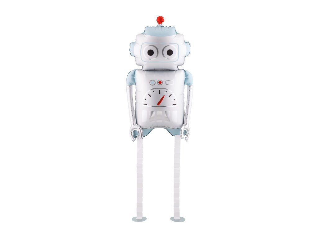 Aduceți distracție și surpriză la petrecere cu acest balon din folie în formă de robot care merge! Ideal atât pentru copii, cât și pentru adulți, perfect pentru petreceri aniversare, petreceri tematice sau ca decorațiune veselă. Pentru a obține efectul de mers, balonul trebuie umflat cu heliu, care îl face să plutească. Picioarele, în schimb, acționează ca o greutate, astfel încât balonul nu se ridică, ci rămâne pe podea.