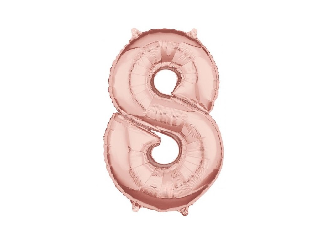 Balon din folie cifră aniversară 8 auriu-roze 66 cm
