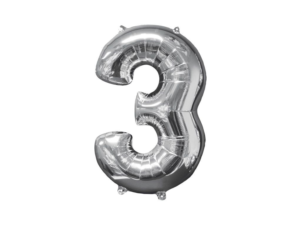 Balon din folie - cifra 3, argintiu 66 cm