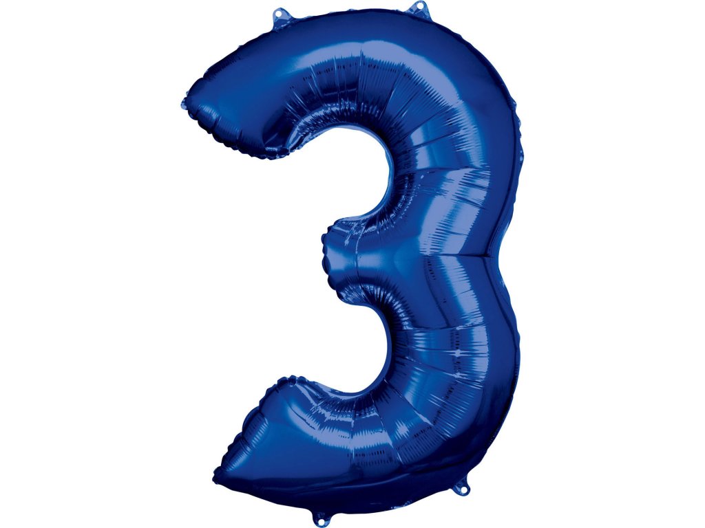 Balon din folie cifra 3 aniversară albastru 86 cm