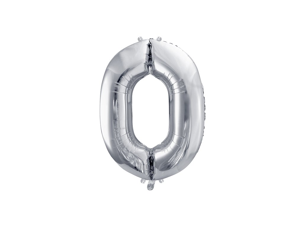 Balon din folie cifra aniversară 0 argintiu 86 cm