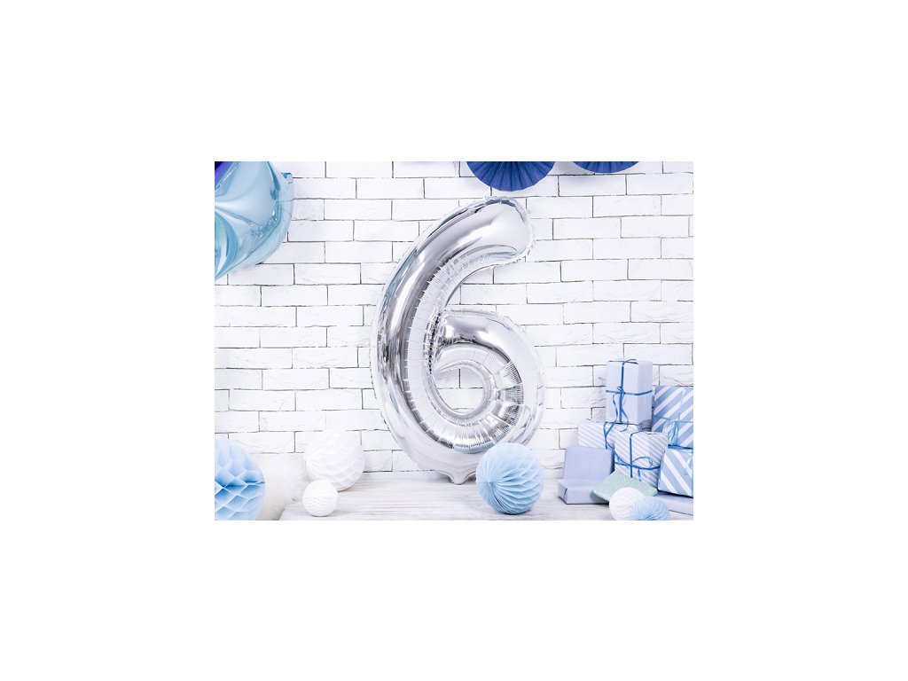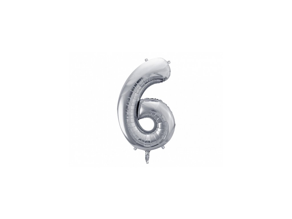 Balon din folie cifra aniversară 6 argintiu 86cm