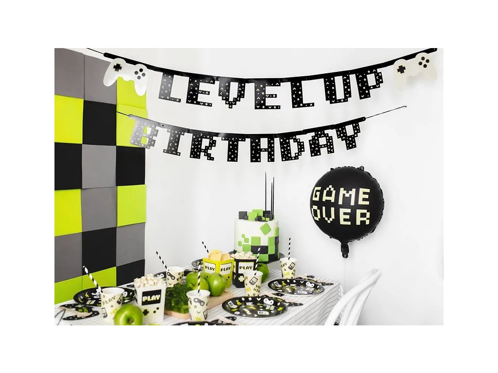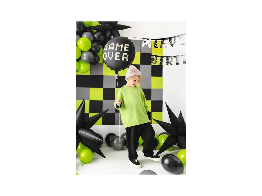 Înviorați petrecerea cu acest balon din folie inscripționat cu „Game Over”! Acest balon stilat și modern este accesoriul perfect nu doar pentru gameri, ci și pentru o petrecere de burlaci, pentru cei care doresc să sărbătorească acest eveniment special cu umor și stil.