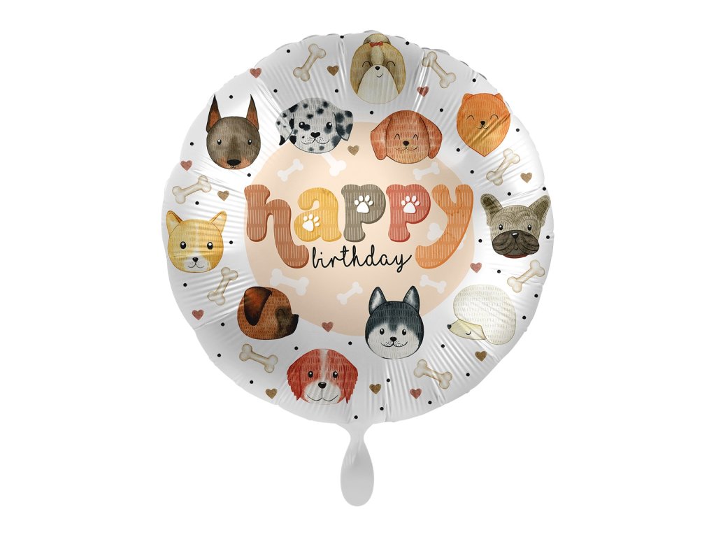 Balon din folie Happy Birthday - Cățeluși 43 cm