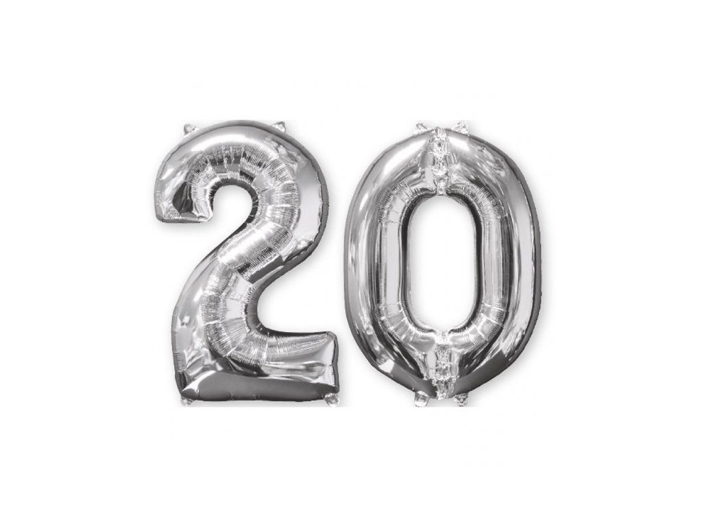 Balon din folie în formă cifrei 20 argintiu 66 cm