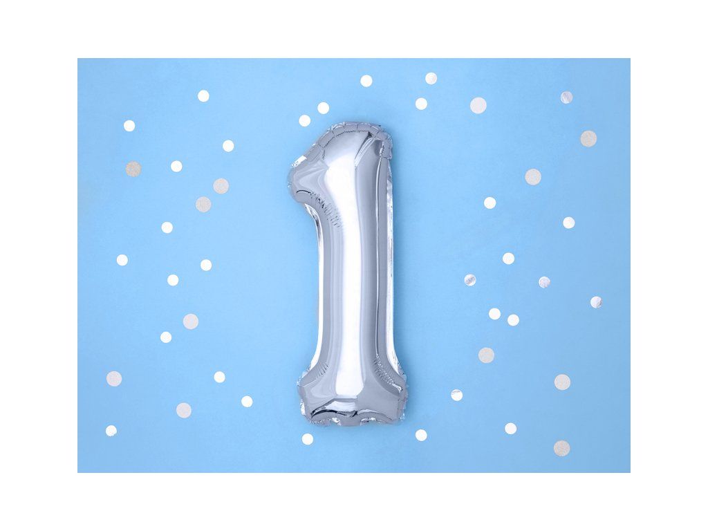 Balon din folie Mini - Cifra 1 argintiu 35cm