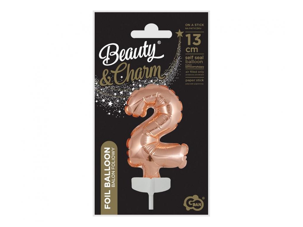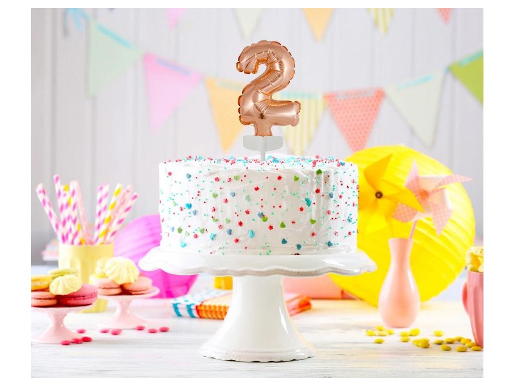 Balon din folie pentru tort - Cifra 2, roz-auriu