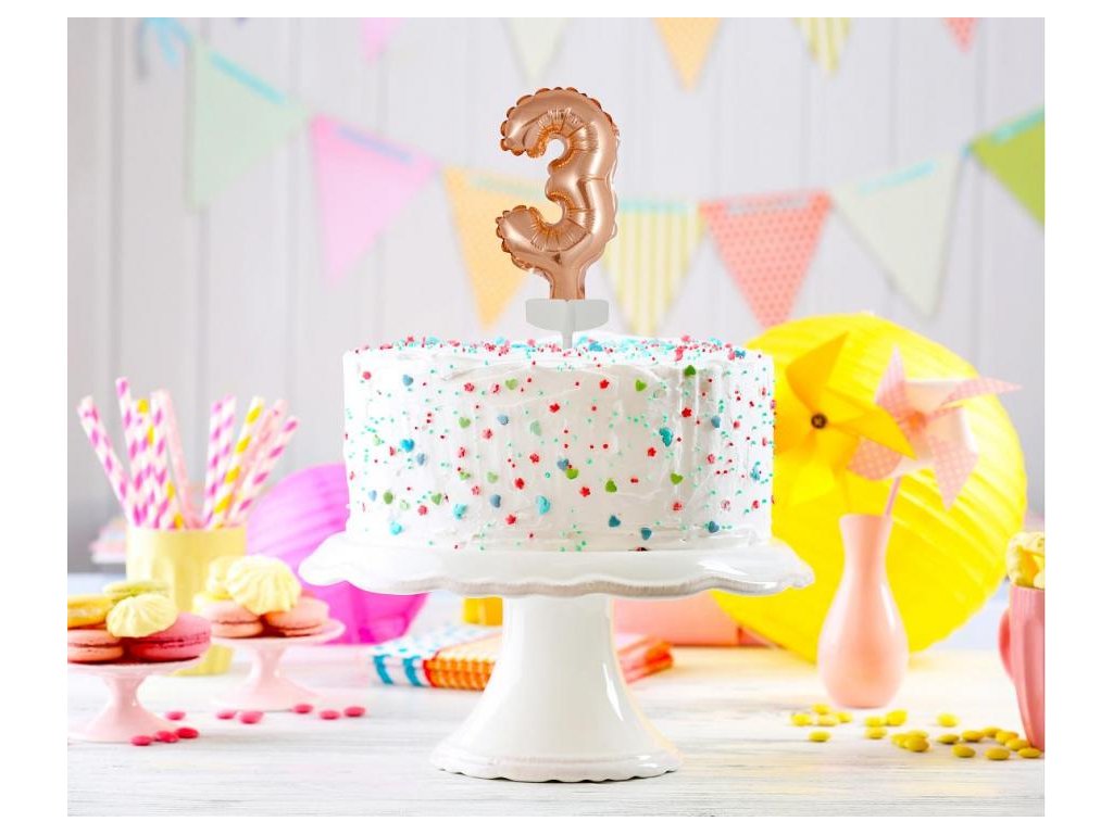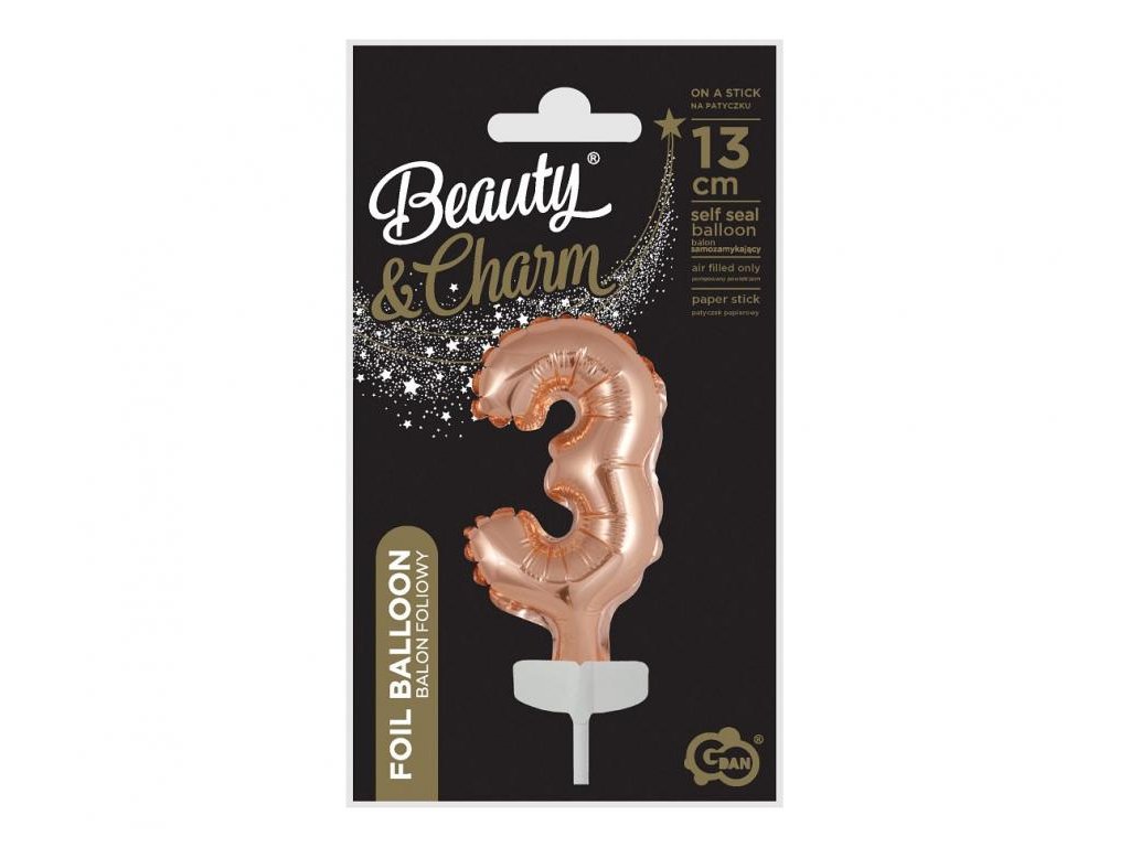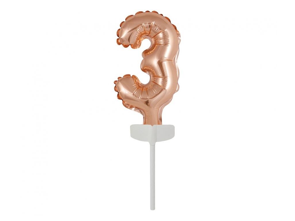 Balon din folie pentru tort - Cifra 3, roz-auriu