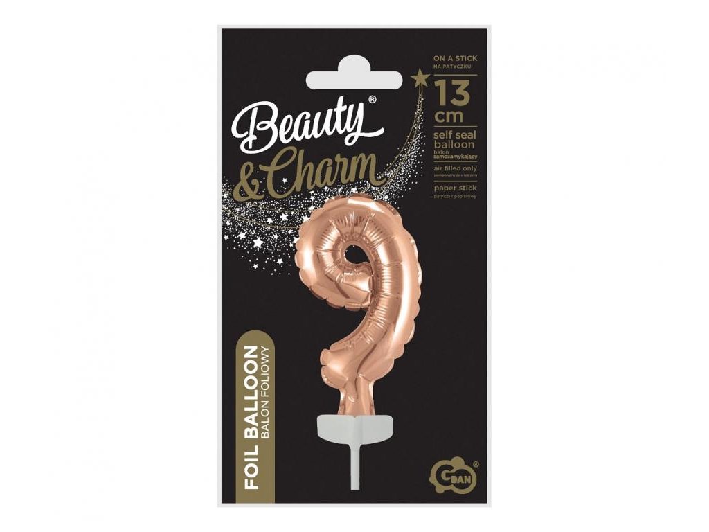 Balon din folie pentru tort - Cifra 9, roz-auriu