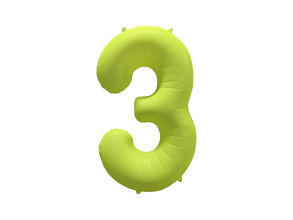 Balon folie cu numărul 3 - Galben neon 86 cm