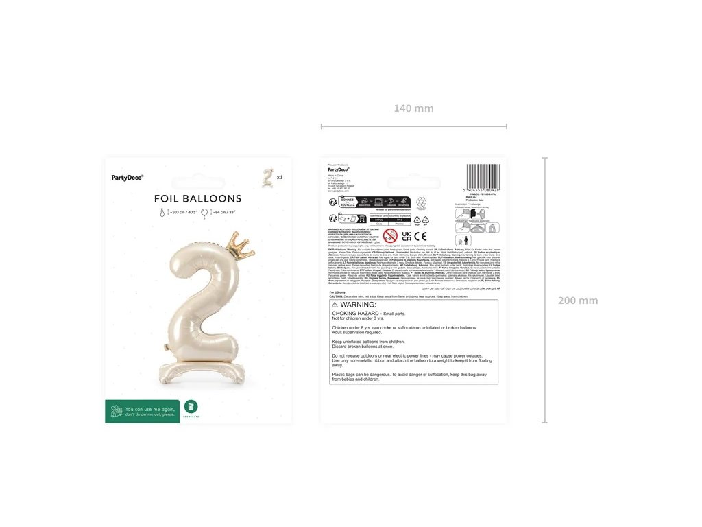 Balonul autoportant din folie cu cifra 2, în culoare crem satinat (84 cm), este exact partenerul pe care îl doriți la petrecerea dumneavoastră! Trebuie doar să-l umflați, să-l așezați într-un loc de cinste și apoi să priviți cum devine vedeta serii – fără emoții și fără nevoie de asistență. Fie că sărbătoriți a doua aniversare, un eveniment important sau pur și simplu pentru că numărul doi este cifra dvs. norocoasă, acest balon vă va aduce cu siguranță un zâmbet pe buze. Este atât de stilat, încât chiar și bunica dvs. și-ar face un selfie cu el! Baloanele pur și simplu nu pot lipsi de la o petrecere – iar acest feț frumos autoportant va lumina fiecare colț și va asigura atmosfera perfectă de party. Pregătiți-vă pentru un val de bucurie, râsete și poate chiar câteva mișcări de dans în jurul balonului cu cifra 2!