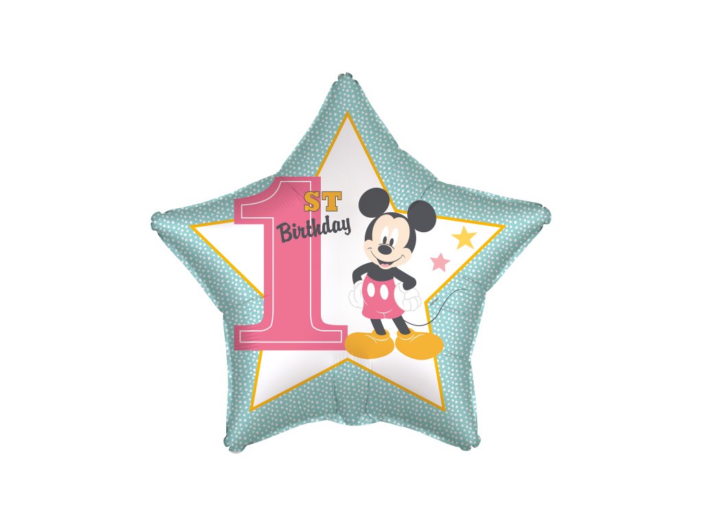 Pregătește-te pentru o petrecere de aniversare de neuitat! Balonul din folie Mickey - Prima aniversare (43 cm) va aduce o doză serioasă de bucurie și râsete la petrecerea ta. Adorabilul Mickey Mouse este pregătit să sărbătorească prima zi importantă a micuțului tău – tot ce trebuie să faci este să îl umfli și distracția poate începe! Acest balon este perfect pentru decor, poze sau un cadou drăguț pentru sărbătorit. Adu un zâmbet pe fața tuturor copiilor și pregătește o petrecere de neuitat plină de culori, bucurie și amintiri vesele alături de îndrăgitul șoricel Mickey!