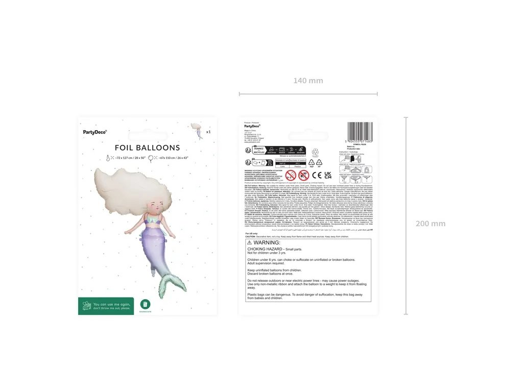 Trăiește o petrecere subacvatică de poveste cu balonul nostru din folie în formă de sirenă! Acest personaj colorat, cu dimensiunile de 67 x 110 cm, este pregătit să anime orice petrecere – fie că ești un mic pirat, o mare prințesă sau doar un iubitor de aventuri marine. Tot ce trebuie să faci este să-l umfli și vei ajunge imediat în compania prietenilor cu solzi și a valurilor de poveste. Balonul sirenă este ideal pentru petreceri tematice, unde cu siguranță va atrage atenția și va aduce zâmbete tuturor invitaților. Pregătește-te pentru un val de râsete, distracție și experiențe de neuitat – cu acest balon, fiecare petrecere va fi pur și simplu „o paradă marină”!