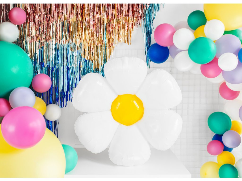 Înviorați orice petrecere cu acest balon din folie în formă de margaretă! Cu dimensiunile de 70 x 80 cm, va deveni un ornament de neignorat la petrecerea de ziua de naștere, petrecerea copiilor sau la orice altă ocazie veselă.