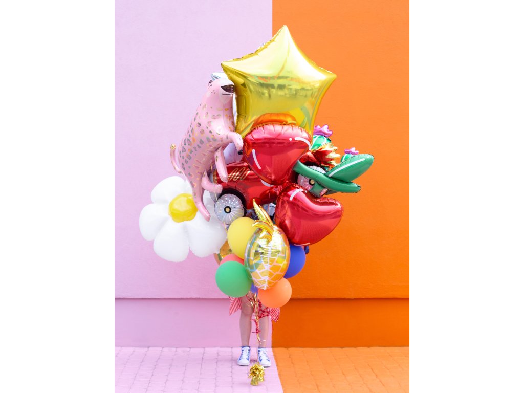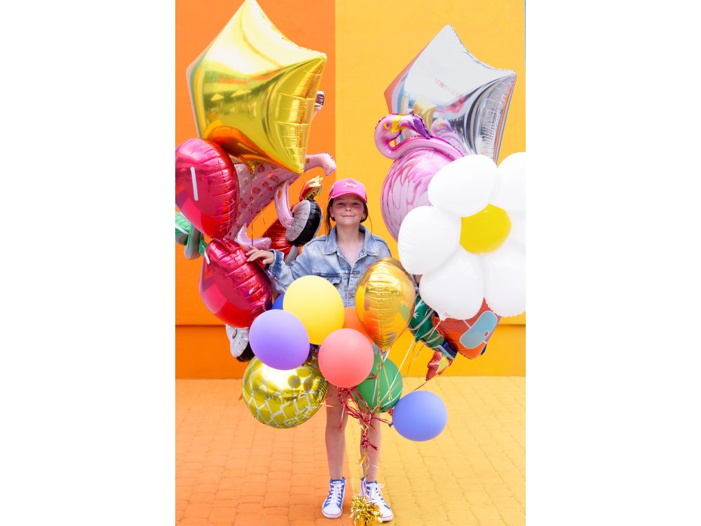 Suprafața lucioasă îi oferă un plus de originalitate și cu siguranță va aduce un zâmbet pe fața celor mici și mari. Umflați-l cu aer sau heliu și lăsați petrecerea voastră să înflorească!