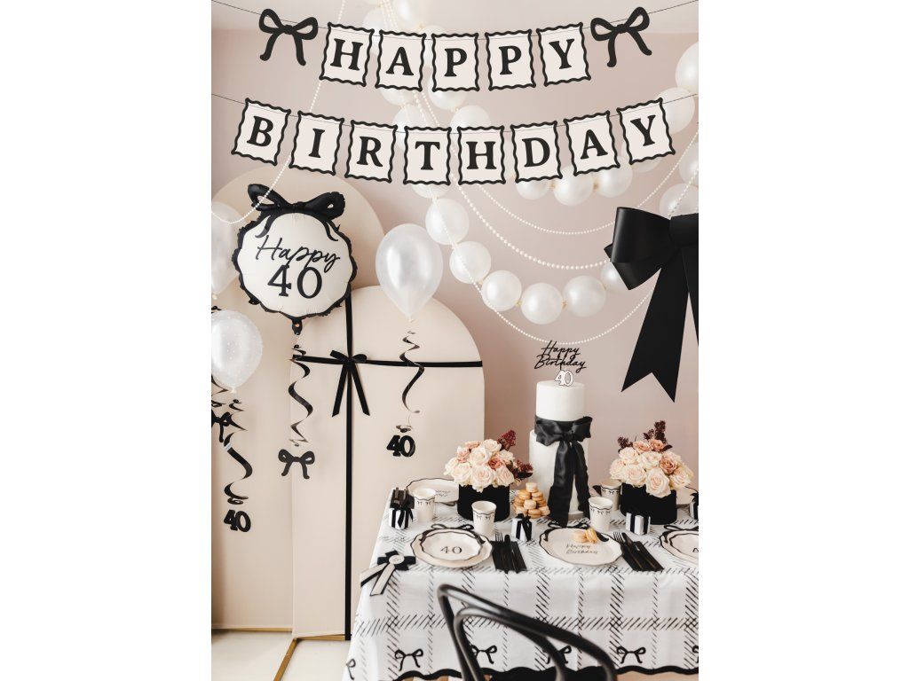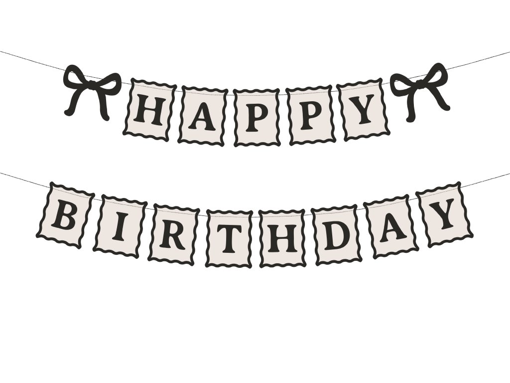 Sărbătoriți ziua de naștere cu eleganță cu acest banner Happy Birthday stilat, într-o combinație de culori crem și negru. Este ideal pentru decorarea pereților, tavanelor sau a petrecerilor, fiind gata de utilizare direct din ambalaj, fără a fi nevoie de asamblare suplimentară. Bannerul din hârtie este fixat cu o sfoară neagră, fiind ușor de agățat și își păstrează forma pe toată durata petrecerii. Este decorul perfect care va oferi petrecerii de ziua de naștere un aer elegant și sofisticat.