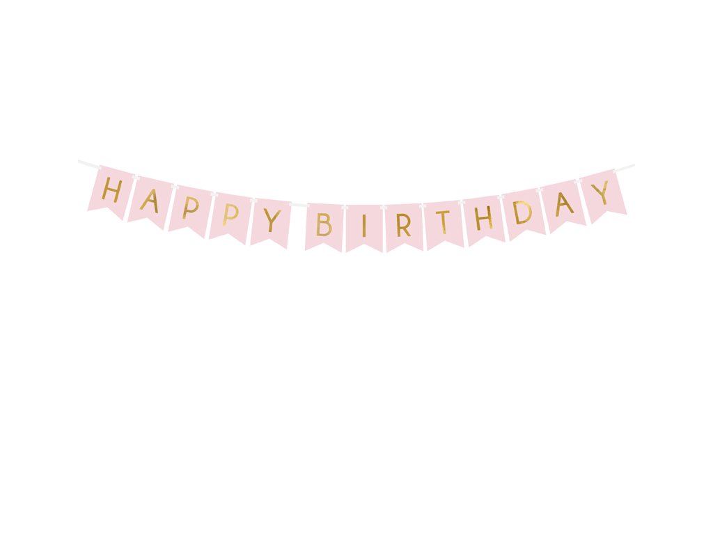Banner - Happy Birthday roz deschis 15 x 175 cm