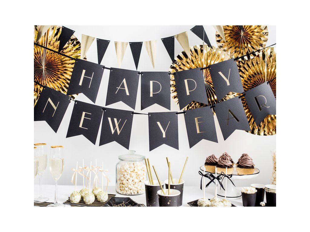 Dacă pregătiți decorațiuni de Revelion, avem pregătit un banner Happy New Year. Acest banner este un decor excelent de Revelion și este potrivit pentru o petrecere sau party.