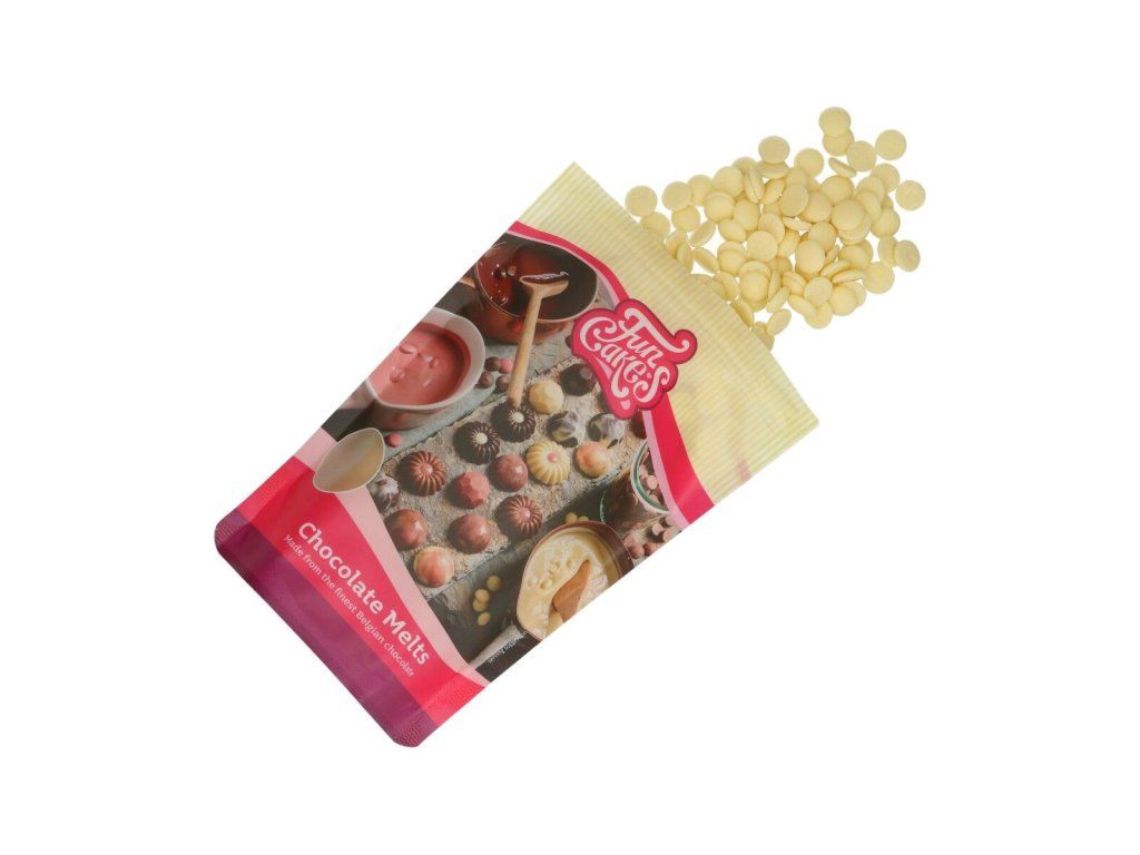 Puteți folosi bucăți de ciocolată albă pentru a înmuia cakepops, pentru a crea glazură sau chipsuri de ciocolată pe prăjituri, plăcinte sau gogoși, în creme și prăjituri. Din adevărată ciocolată adevărată belgiană.