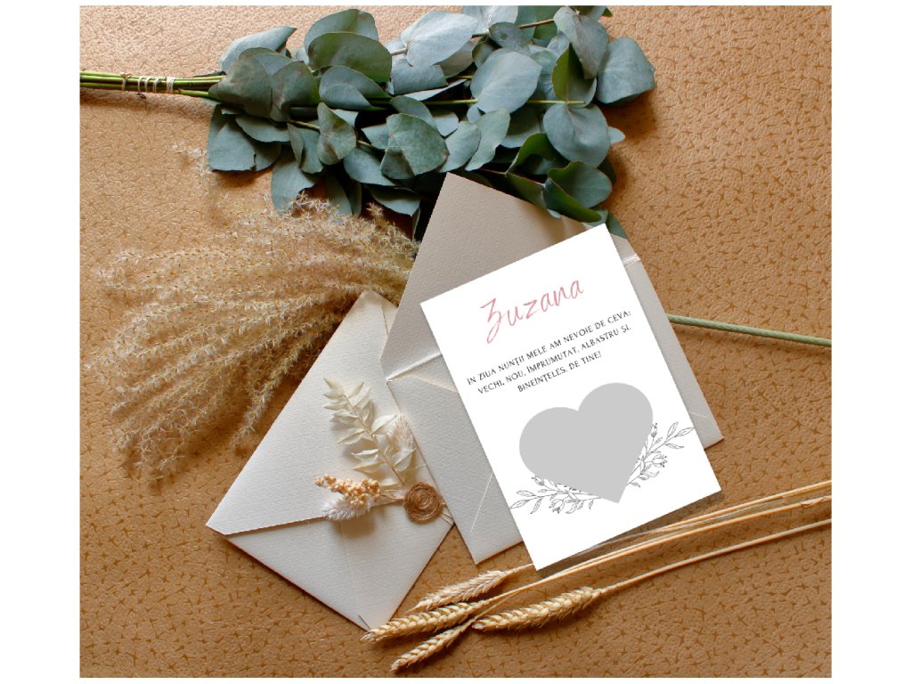 Sunteți în căutarea modalității perfecte de a vă adresa persoanelor dragi pentru a fi nașii D-voastră în ziua cea mare? Folosiți un bilet răzuibil de nuntă pentru nași, cu o inimă sub care se ascunde o invitație drăguță.