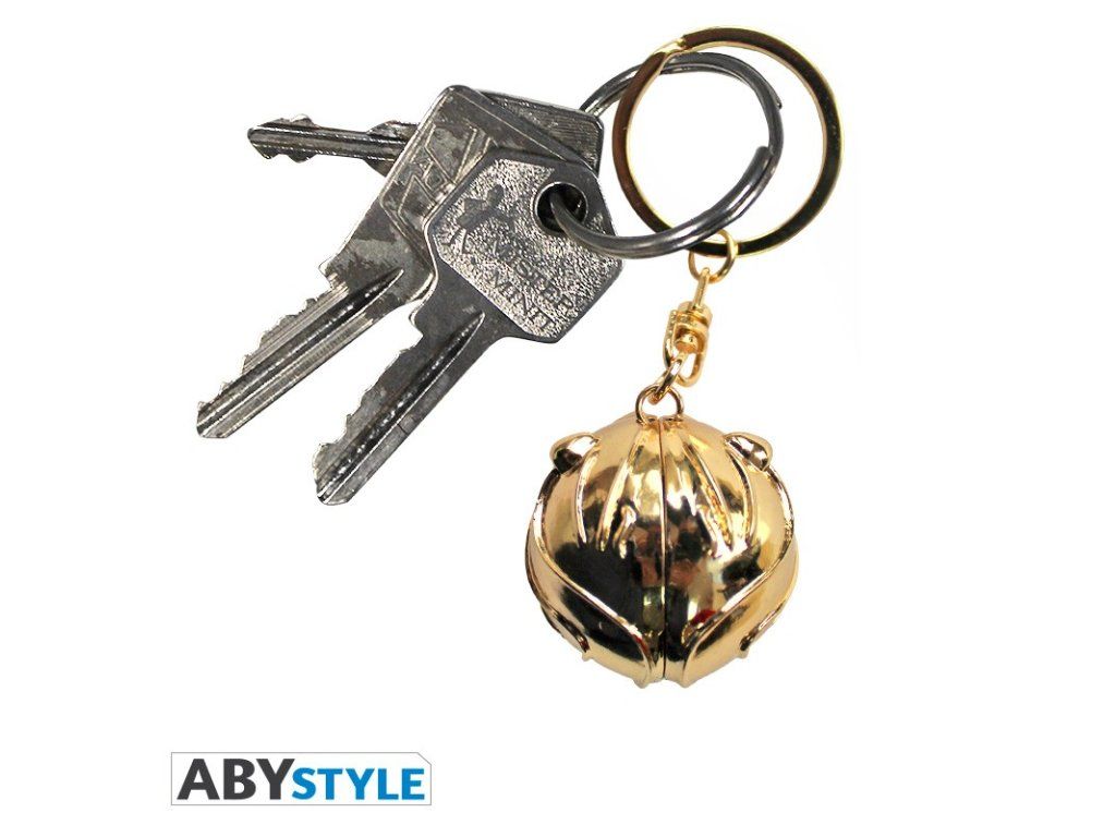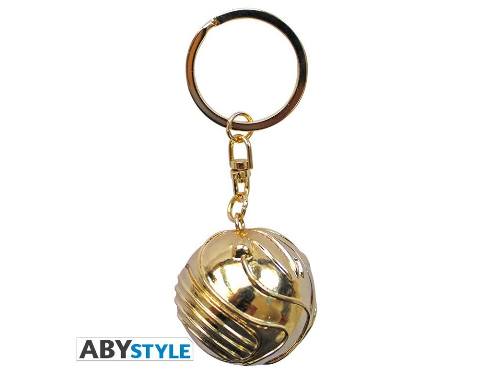 Breloc din metal elegant, sub formă de (Hoţoaica mică) Golden Snitch, o minge aurie strălucitoare de mărimea unei nuci din poveștile Harry Potter.