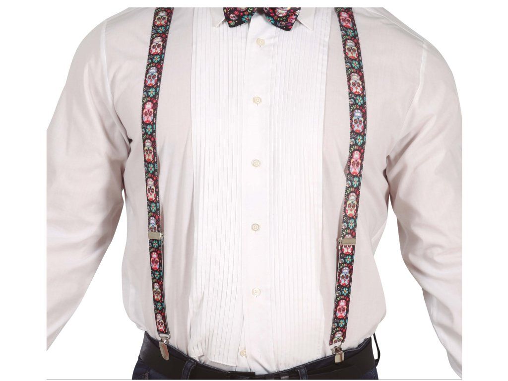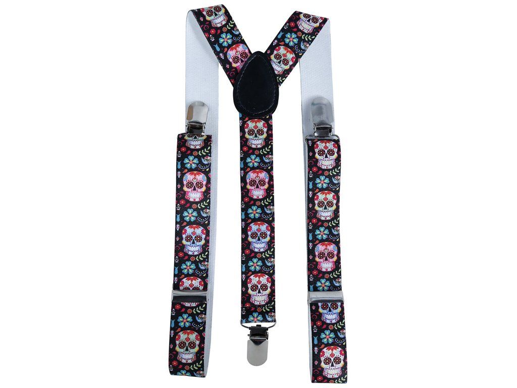 Bretelele elegante și amuzante vor fi un accesoriu original a cămășii sau a costumului D-voastră. Bretelele cu tema Catrina sunt perfecte pentru o petrecere de Halloween sau pentru carnaval.