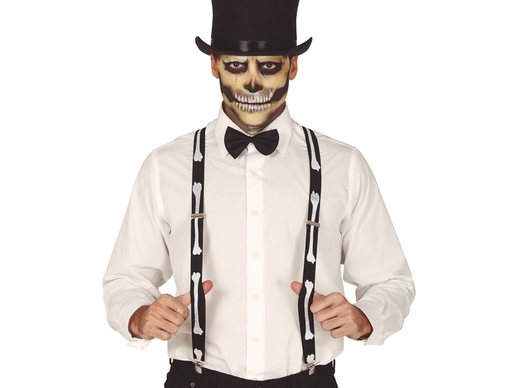 Costumul de Halloween sau carnaval, poate fi mai credibil si datorită diferitelor accesorii cum sunt aceaste Bretele cu motivul craniului. Acest accesoriu se potriveste pentru diferite costume pentru carnaval, bineînteles lăsăm totul la imaginatia voastră.