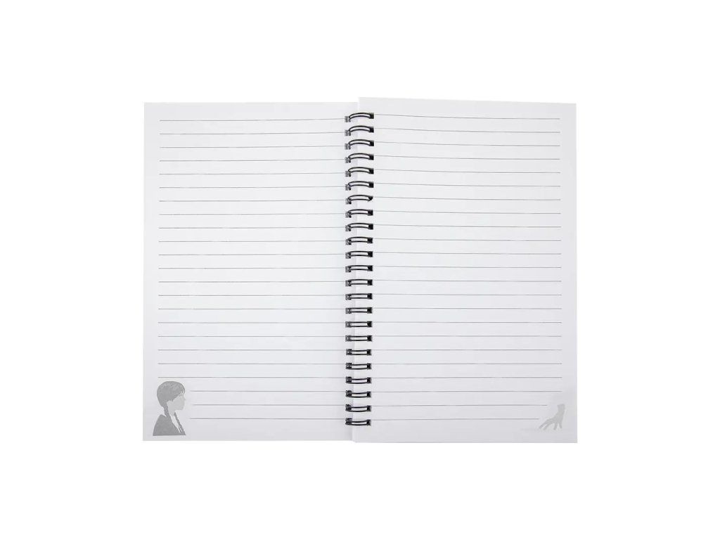 Acest caiet cu spirală este perfect pentru liste și notițe. Designul atractiv face din acest produs un cadou excelent pentru toți fanii Wednesday.