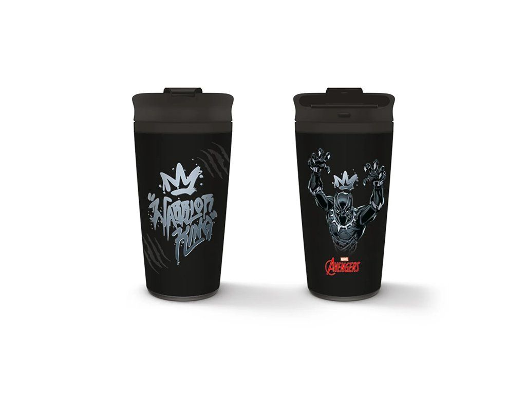 Porniți la drum cu această frumoasă cană de călătorie, împodobită cu sloganul și personajul din popularul film Pantera Neagră.