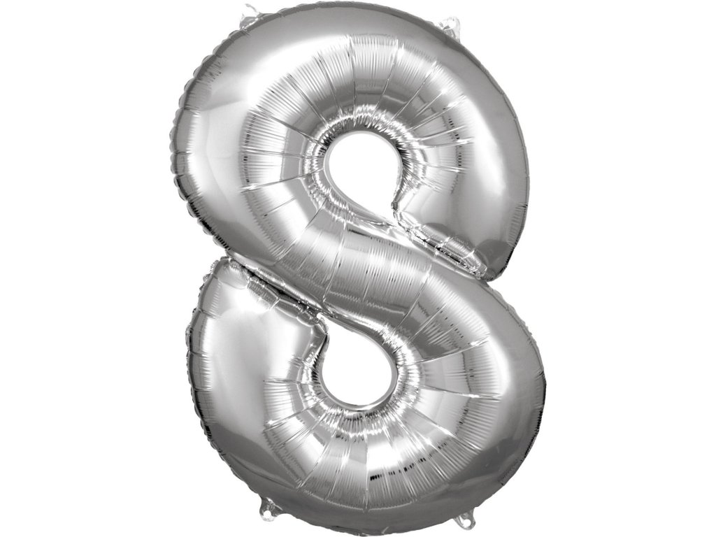 Balon din folie cifra 8 aniversară argintiu 86 cm