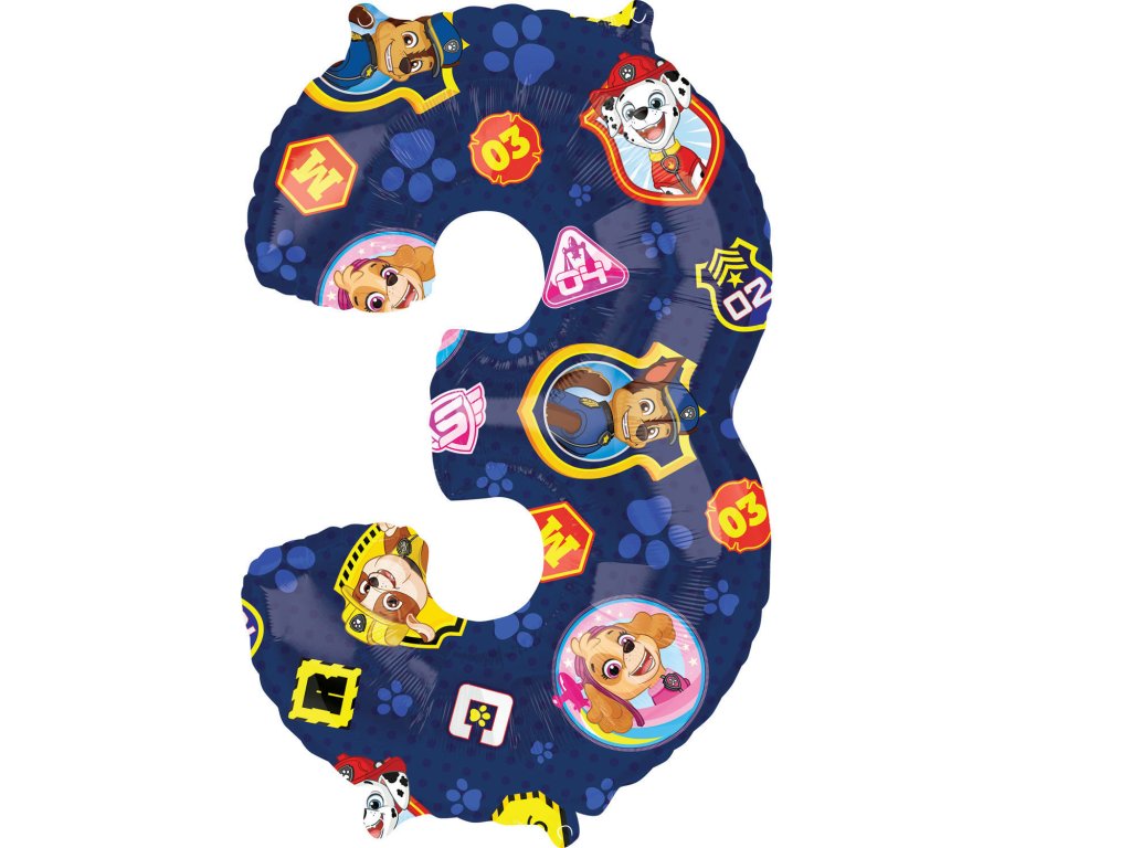 Balon din folie cifra aniversară 3 - Patrula căţeluşilor 66 cm