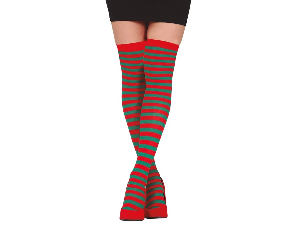 Costumul tău de Crăciun poate arăta și mai frumos datorită diverselor accesorii, cum ar fi ciorapii tematici roșu-verde. Acest accesoriu este potrivit în special pentru costumele de Crăciun, dar lăsăm folosirea lui imaginației tale.