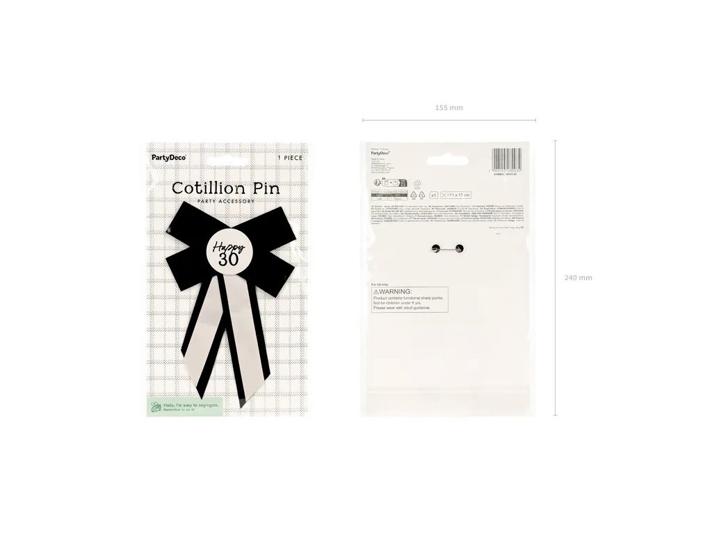 Trei zeci la gât? Asta cere o sărbătoare pe cinste! Cu această cocardă crem-negru, toată lumea va ști cine este vedeta serii. Prinde-o pe piept, pe cadou sau direct pe tort (dar atenție la frișcă!) și arată-le tuturor că 30 este doar un număr – și încă unul rotund! Această cocardă veselă va anima petrecerea, va aduce zâmbete chiar și celor mai mohorâți și va oferi petrecerii tale farmecul pe care îl merită. Așadar, la distracție – pentru că treizeci e doar începutul unei noi aventuri!