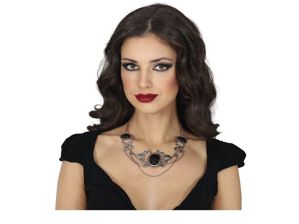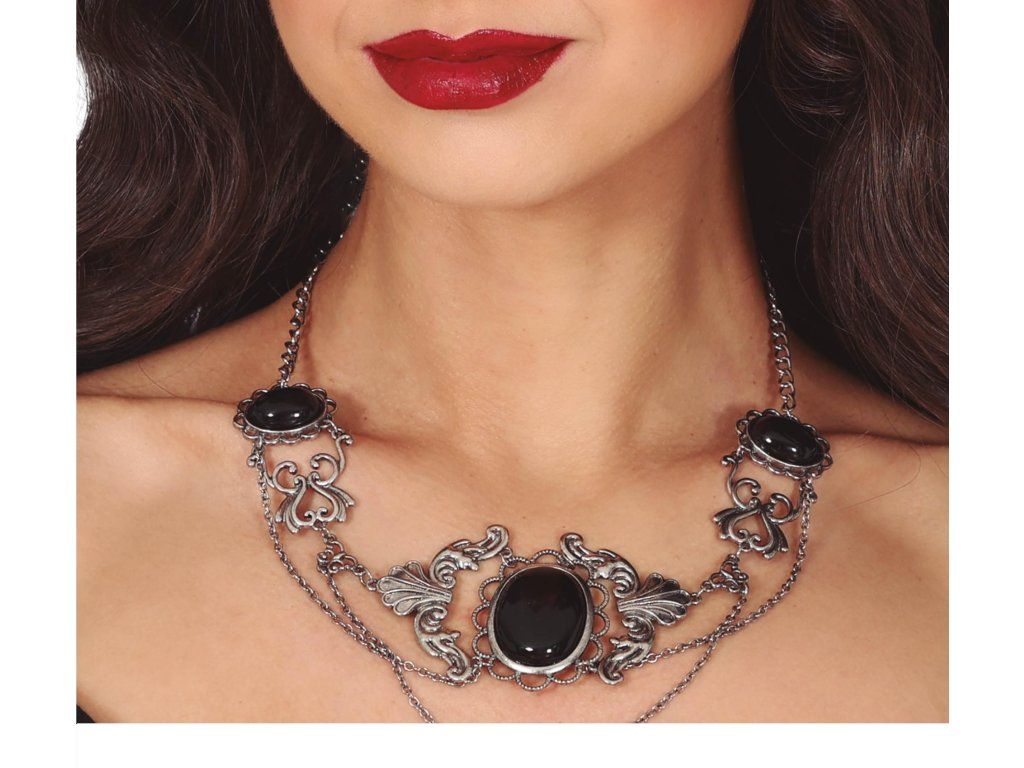 Costumul Dumneavoastră de carnaval sau de Halloween poate deveni mult mai autentic cu ajutorul diverselor accesorii, precum acest colier negru cu rubin. Acest accesoriu este ideal pentru costumele de carnaval, dar modul de utilizare rămâne la imaginația D-voastră.