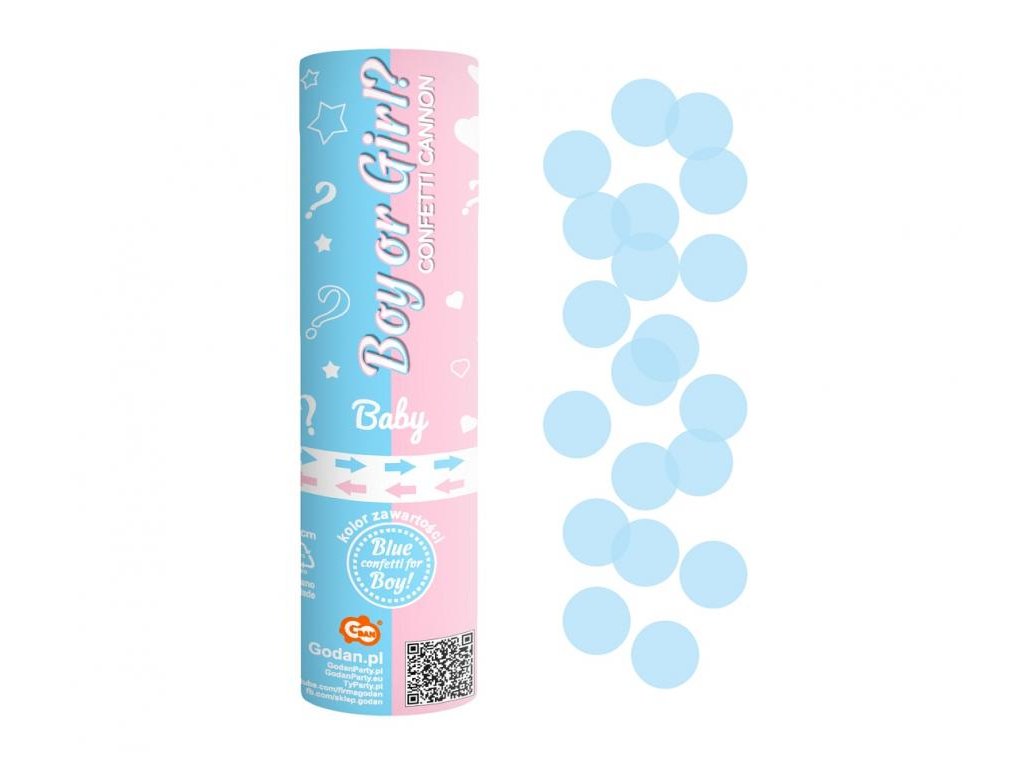 Pregătiți-vă pentru un moment de revelație spectaculos! Cu confetti cu lansare Boy or Girl - Albastre, fiecare dezvăluire a genului bebelușului se transformă într-un spectacol de neuitat. Tot ce trebuie să faceți este să țineți bine tubul, să rotiți partea de jos și... BUM! O ploaie de confetti albastre din hârtie va zbura prin aer, anunțând clar că în familie va veni un băiețel. Specificații tehnice? Tubul este umplut cu confetti de hârtie de calitate, sigure atât pentru copii, cât și pentru adulți. Mecanismul funcționează pe bază de aer comprimat – fără foc, fără substanțe pirotehnice, doar distracție pură și siguranță. Raza de acțiune a confetti-urilor este de până la 5 metri, deci nu va lipsi spectacolul vizual! Uitați de anunțurile plictisitoare – cu această confetti cu lansare, petrecerea voastră de dezvăluire a genului va fi plină de râsete, bucurie și surprize albastre. Pregătiți-vă aparatele foto, pentru că sigur veți dori să imortalizați acest moment!