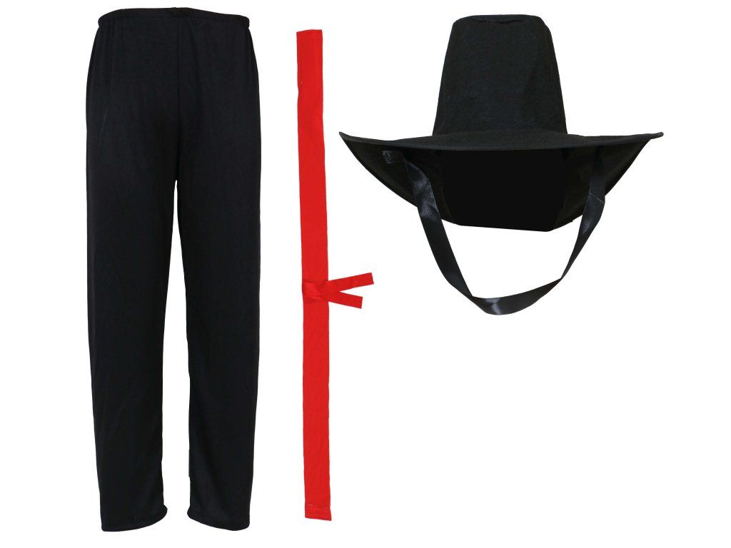 Costumul conține: pălărie, pelerină, pantaloni, tricou, curea