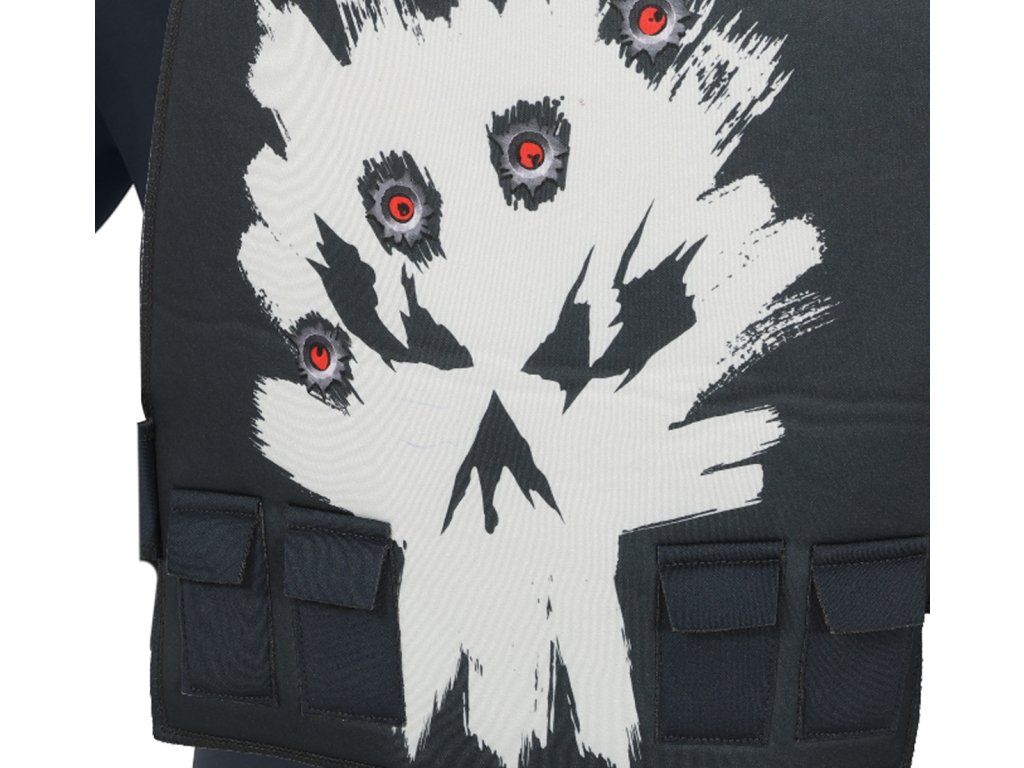 Elementul dominant este celebra craniu de pe piept – niciun ticălos nu va îndrăzni să se ia de tine! Pachetul conține și pantaloni negri stilizați și o curea, datorită cărora vei arăta ca un adevărat Punisher pregătit pentru orice misiune. Acest costum este ideal pentru toți cei care vor să îmbine precizia tehnică, confortul și o porție serioasă de distracție. Devino legenda serii – cu Punisher este imposibil să dai greș!
