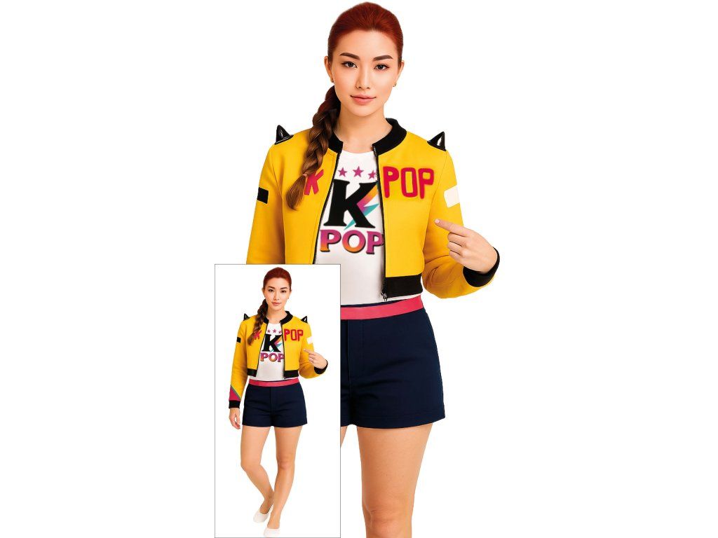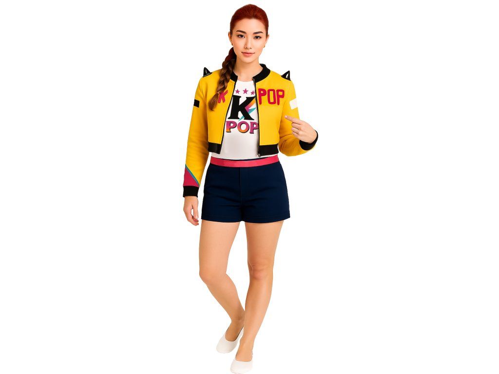 Îmbracă-te ca un adevărat idol Kpop și pregătește-te pentru aventură – fie că mergi la dans, la vânătoare de demoni sau doar să strălucești la petrecere. Cu costumul Rumi vei fi de neobservat, veselă și plină de energie – exact ca eroii tăi Kpop preferați din HUNTR/X!