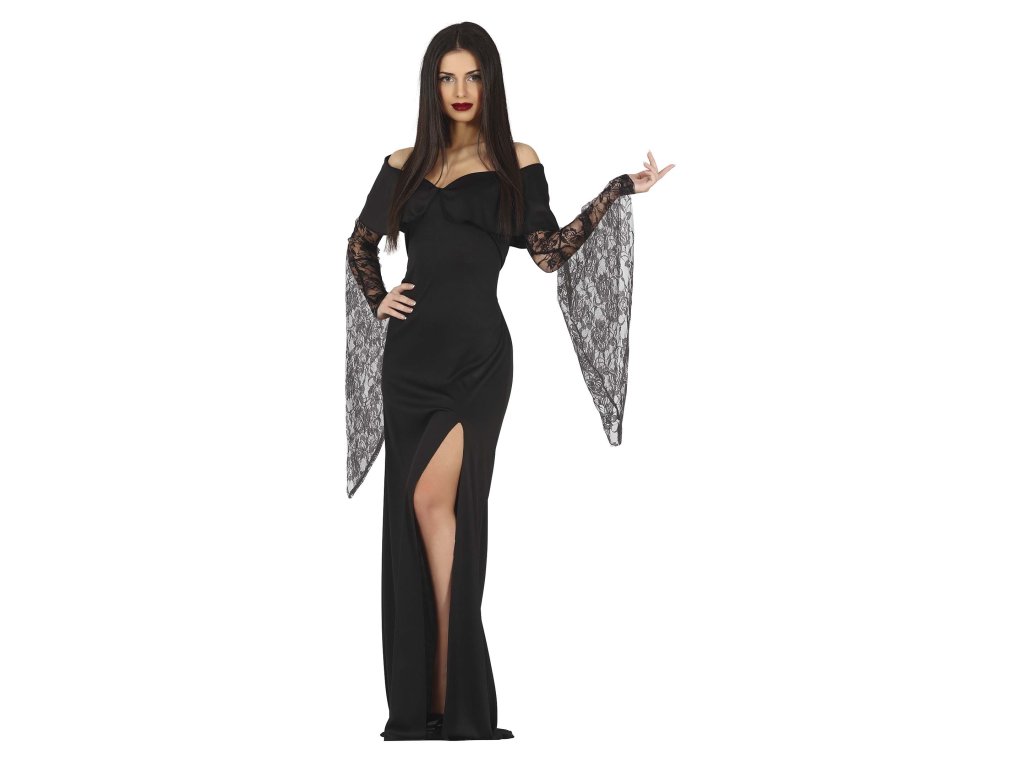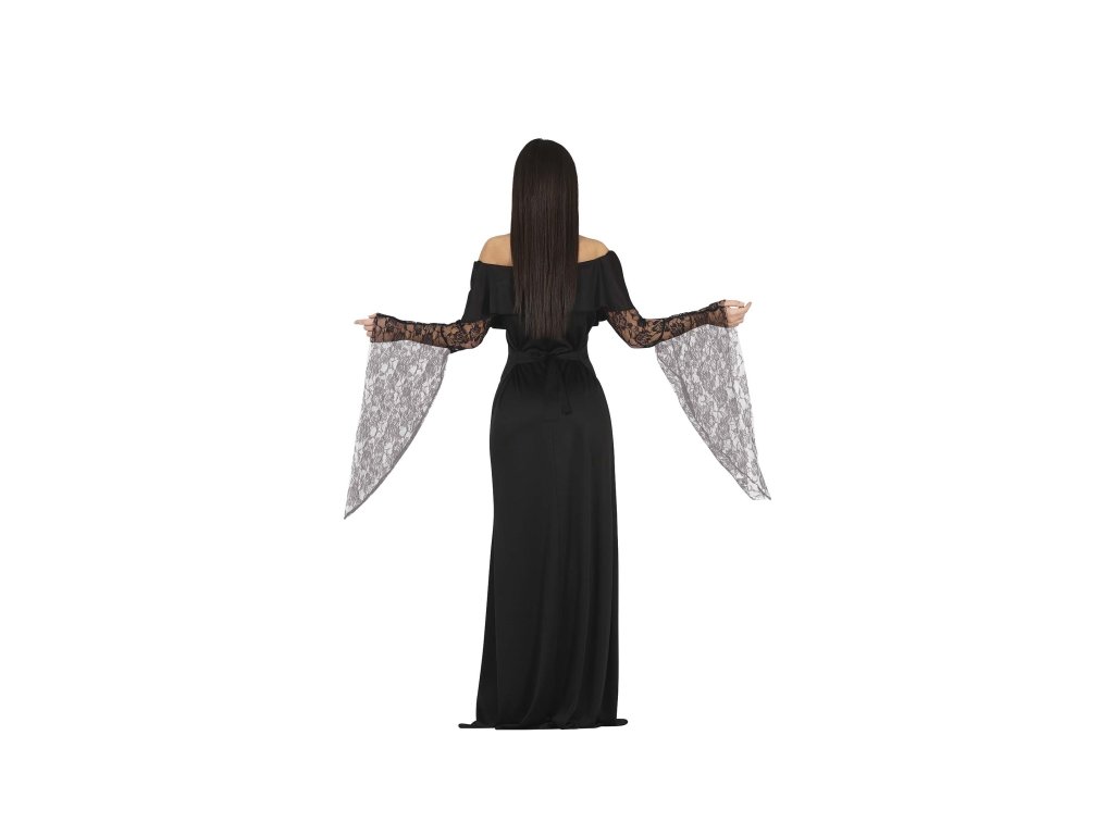 Vă pregătiți pentru un carnaval sau o petrecere costumată? Îmbrăcați-vă ca Morticia din serialul TV cult și bucurați-vă de cea mai bună petrecere de Halloween pe care ați avut-o vreodată. Inspirat de serialul Familia Addams, acest costum pentru damă cu un aer înfricoșător negru este perfect pentru Halloween sau pentru o petrecere costumată. Îmbrăcați-vă în acest costum original Morticia cu care veți fi cu siguranță vedeta serii. Lăsăm utilizarea lui la latitudinea și imaginația D-voastră.