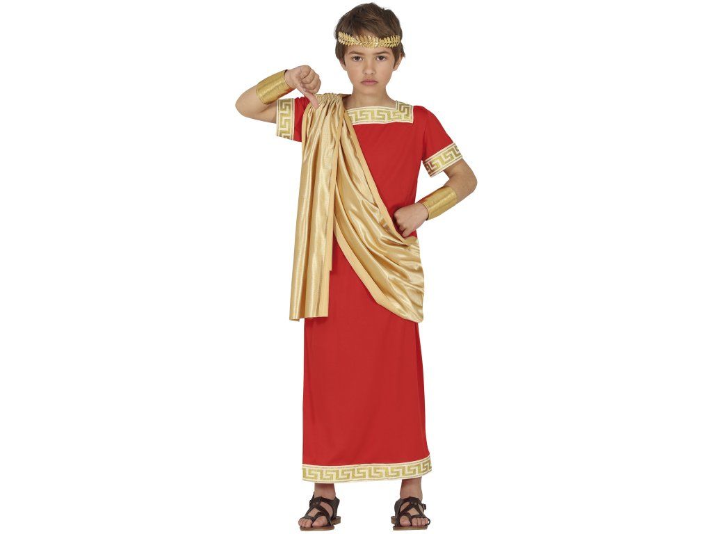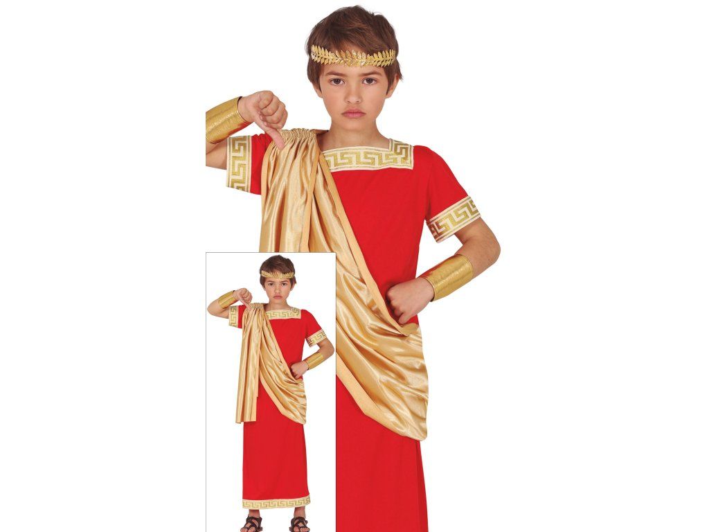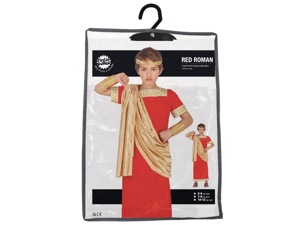 Costumul pentru băieți Roman este alegerea perfectă pentru micii aventurieri care vor să se transpună în vremurile Romei antice. Costumul include o tunică roșie cu elemente tipice romane, precum ornamente aurii și detalii ce amintesc de stilul militar sau imperial. Acest costum este ideal pentru carnavaluri, petreceri tematice sau spectacole școlare.
